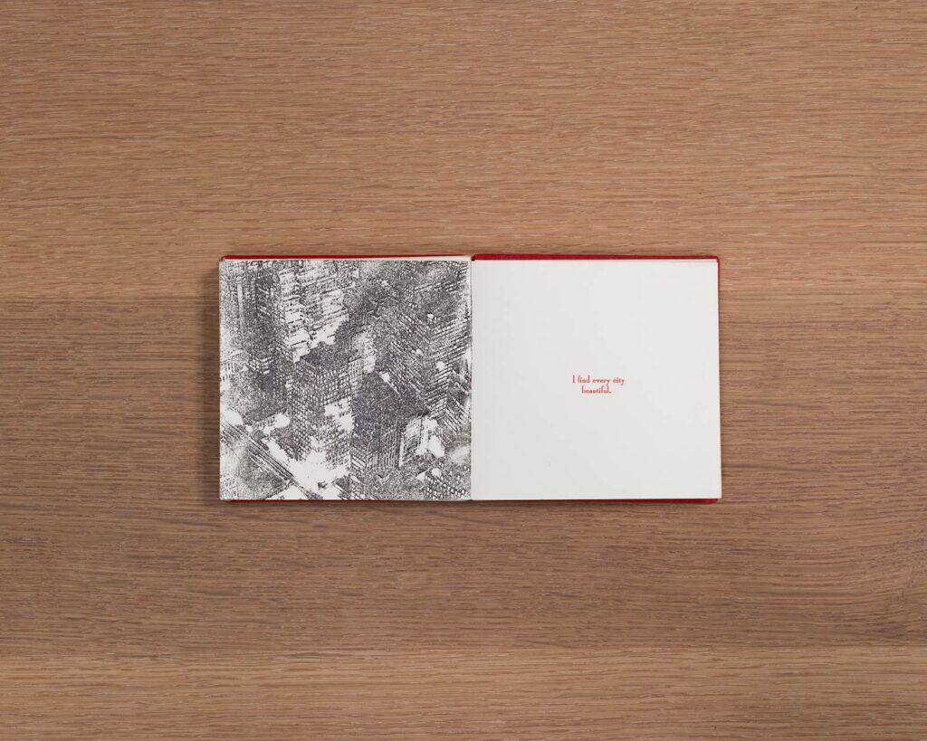 Xerox transfer • Letterpress printing • Pen and Ink • Accordion binding • Zerkall Biblio paper • Edition of 7 • Italian book cloth • 4 x 4 inches • 40 pages • 2000